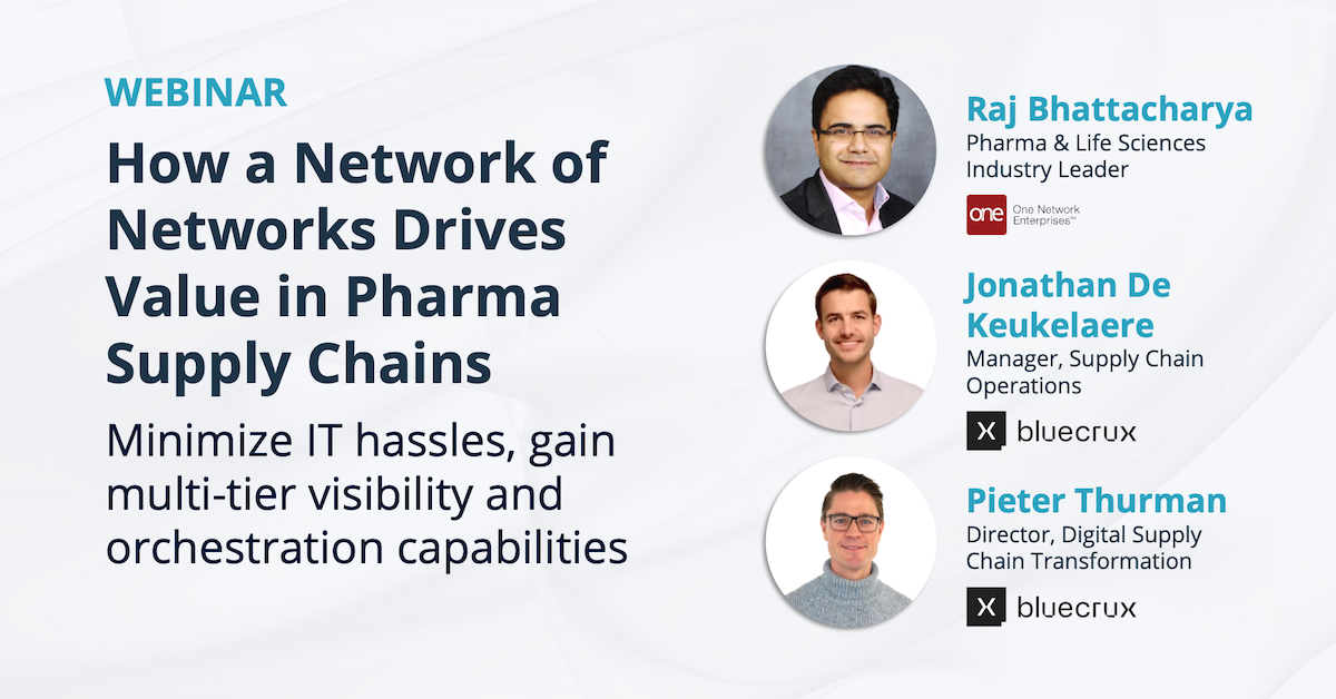 One Network Enterprises (ONE) and Bluecrux partners will jointly discuss how the partnership works in developing smart implementation pathways that drive the higher ROI for clients. Using real-world client use cases, we’ll explain why this approach is delivering value far faster and beyond what enterprise-based solutions have achieved.